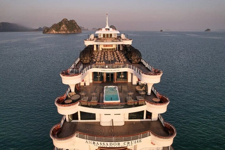 With this enthralling excursion, you will have an unforgettable adventure on the biggest boat in Halong Bay. Discover the delights of Surprise Cave, the charm of Cua Van fishing village, and the enchantment of Luon Cave. Exciting activities include kayaking, squid fishing, and watching magnificent sunsets. As you begin on the ultimate voyage of a lifetime, find peace in the large accommodations.
